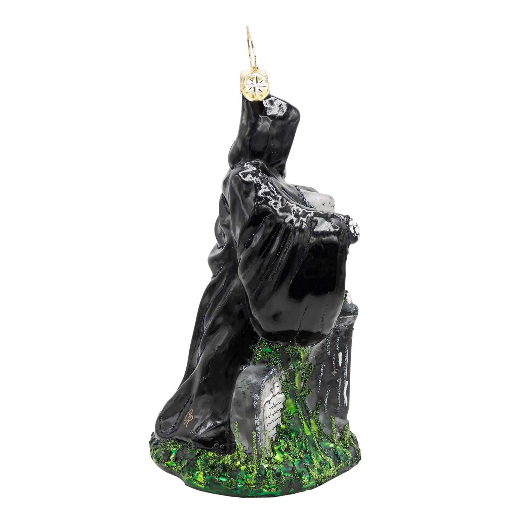 Among the gravestones and tangled vines, Scrooge faces the truth: this future is cold, final, and deserved. The Ghost of Christmas Yet to Come looms above it all—mute and merciless—waiting to see what choice Scrooge will make. This ornament is a part of our 2026 Ornament of the Month Collection.