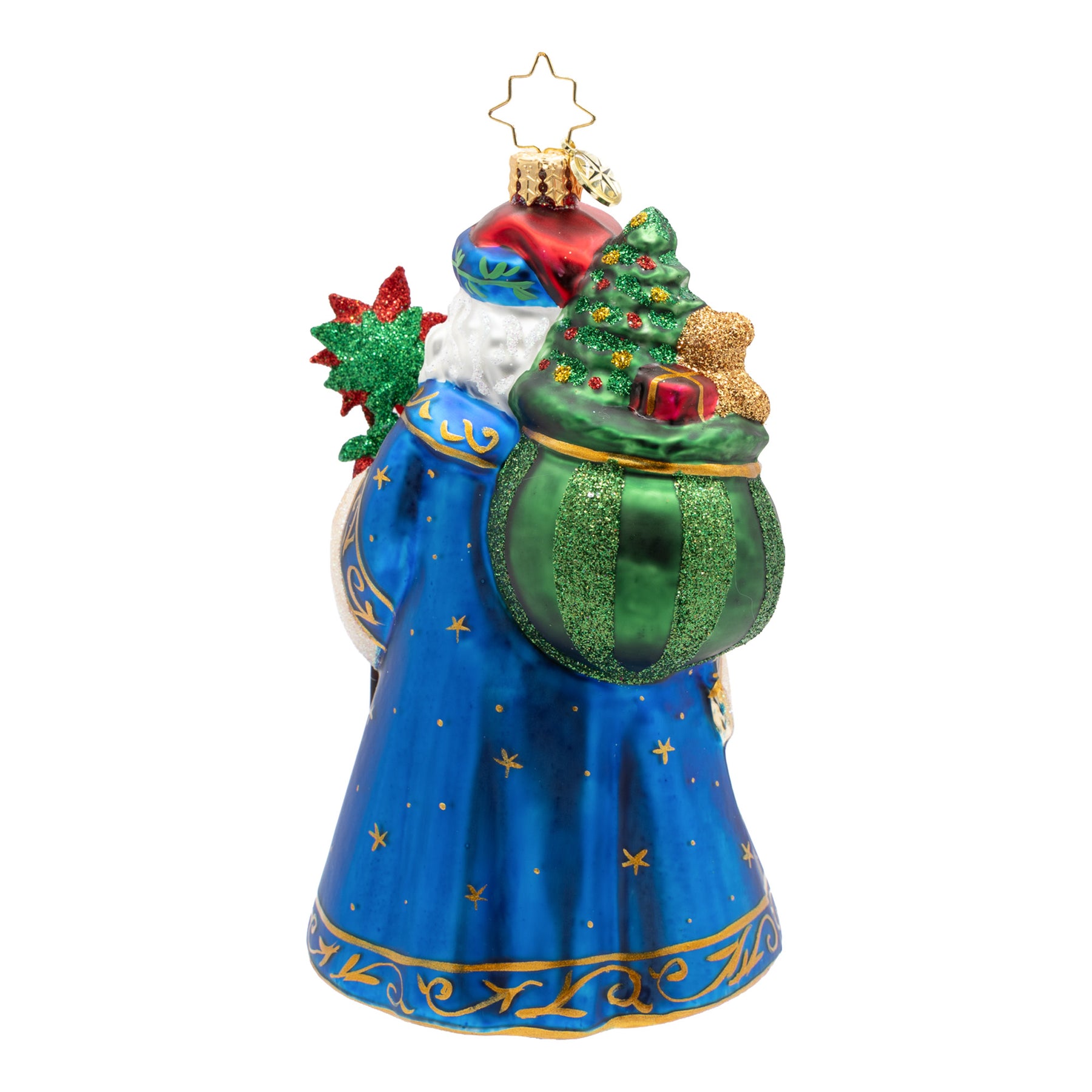Dressed in regal blue with a golden staff and starry cloak, Father Christmas’ Eve brings Old World charm to your holiday tree. A peaceful winter village scene glows on his robe, capturing the quiet magic of Christmas night.