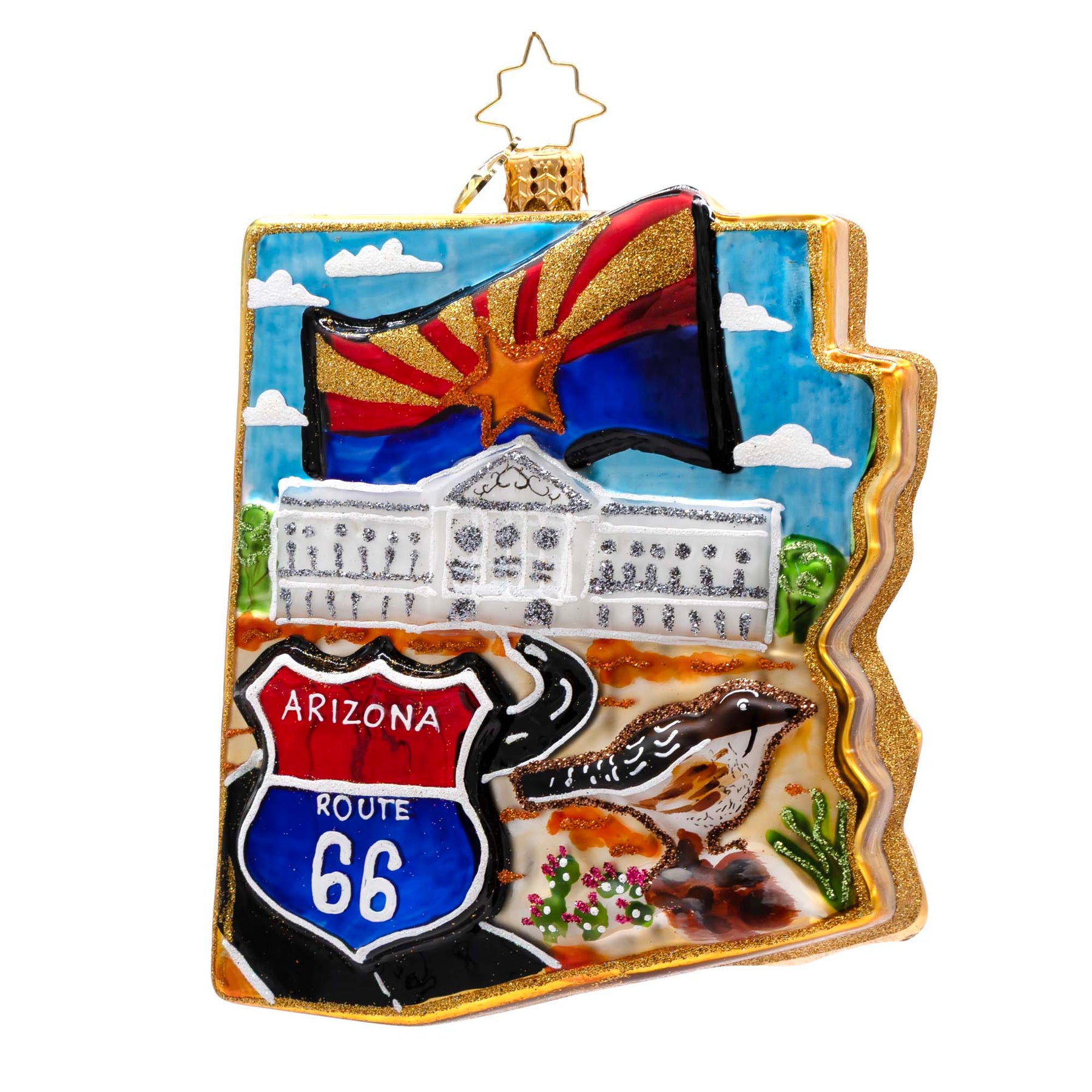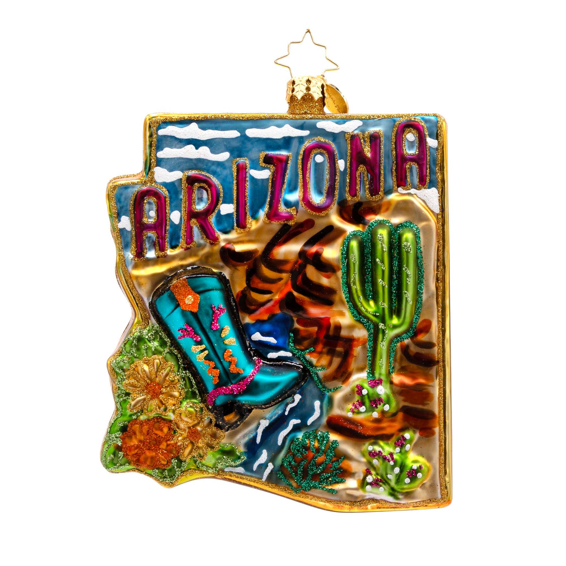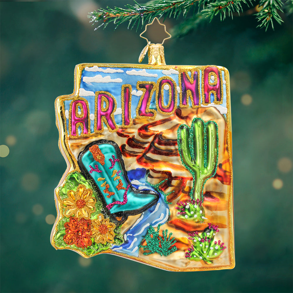 From the red rocks to the desert skies, this Arizona ornament brings the warmth and wonder of the Southwest into your home. A perfect way to celebrate Arizona’s breathtaking landscapes and unique culture during the holiday season.