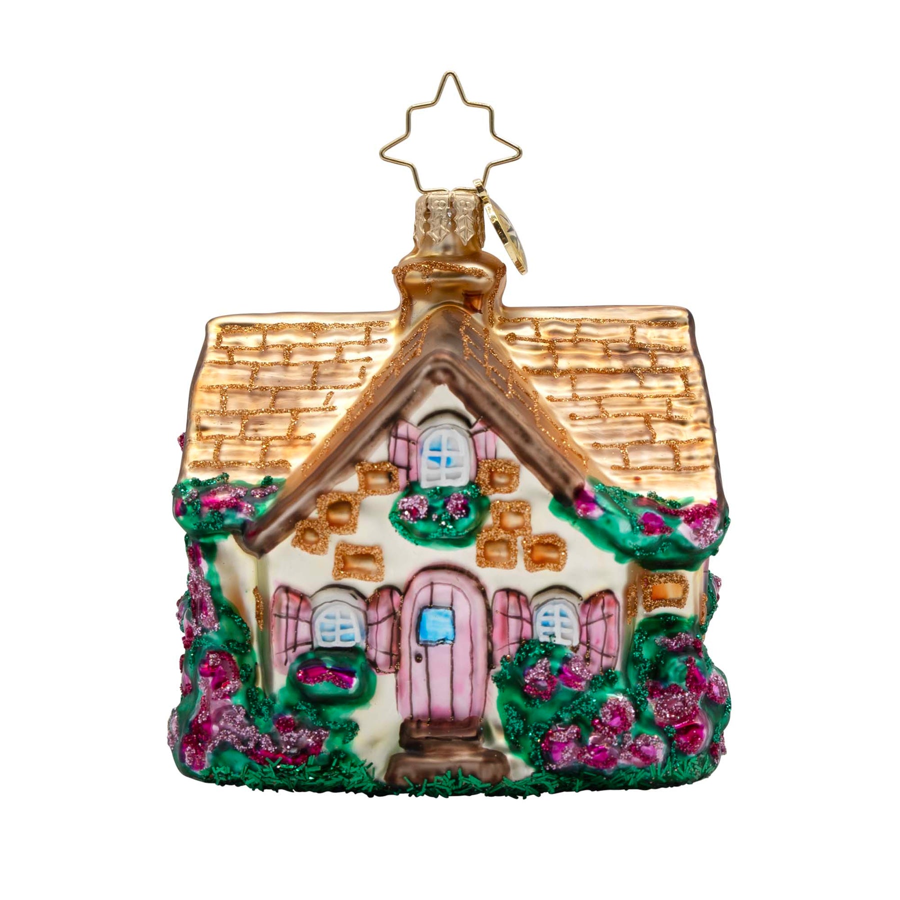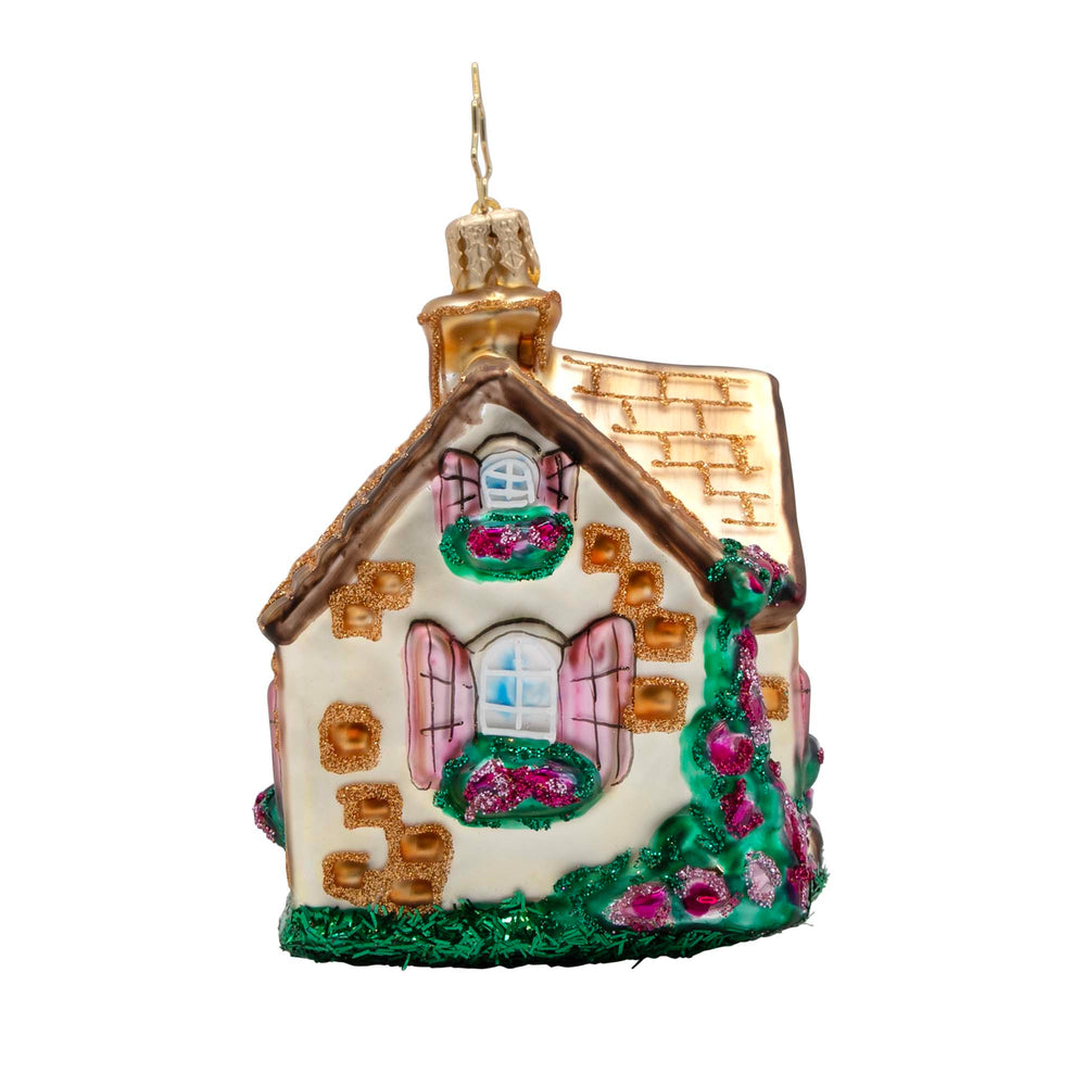 Spring is in the air! This charming cottage ornament blooms with vibrant flowers and a hint of enchantment.
